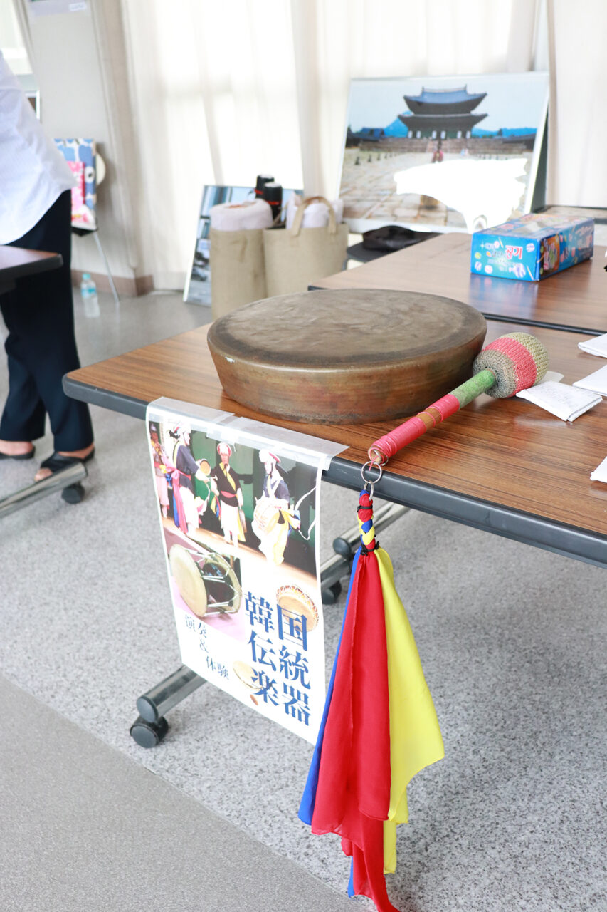 イベントの目玉として行われたのは、韓国伝統楽器「チャング」の演奏と体験会です。ファン・グンボ先生による迫力ある演奏の後、参加者も実際に楽器に触れてリズムセッションを体験。普段なかなか触れる機会のない楽器に多くの参加者が興味を示し、「貴重な体験だった」「楽しかった」といった感想が寄せられました。