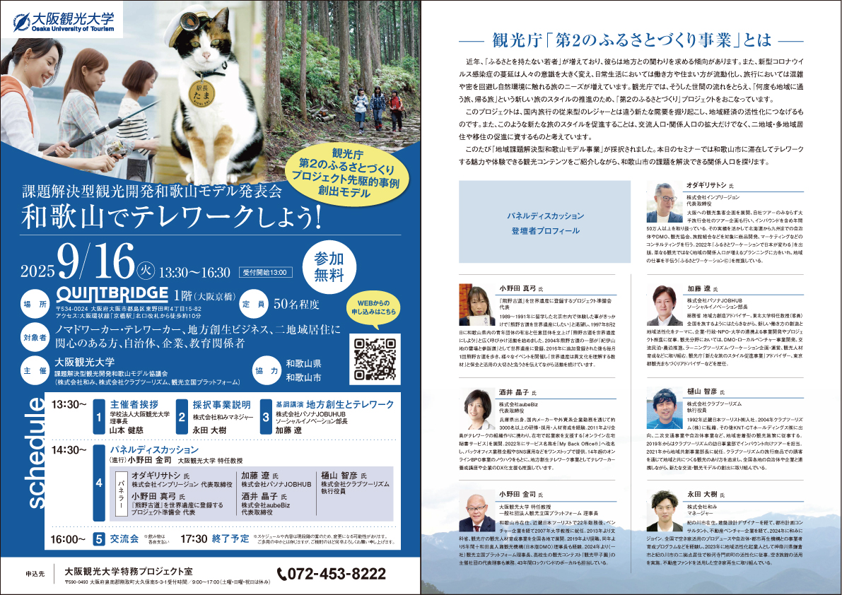 和歌山市での魅力的なテレワークプランをご紹介するとともに、地方創生、旅行会社、テレワーカーといった多様な立場から、楽しく実践できるテレワークの方法を探ります。