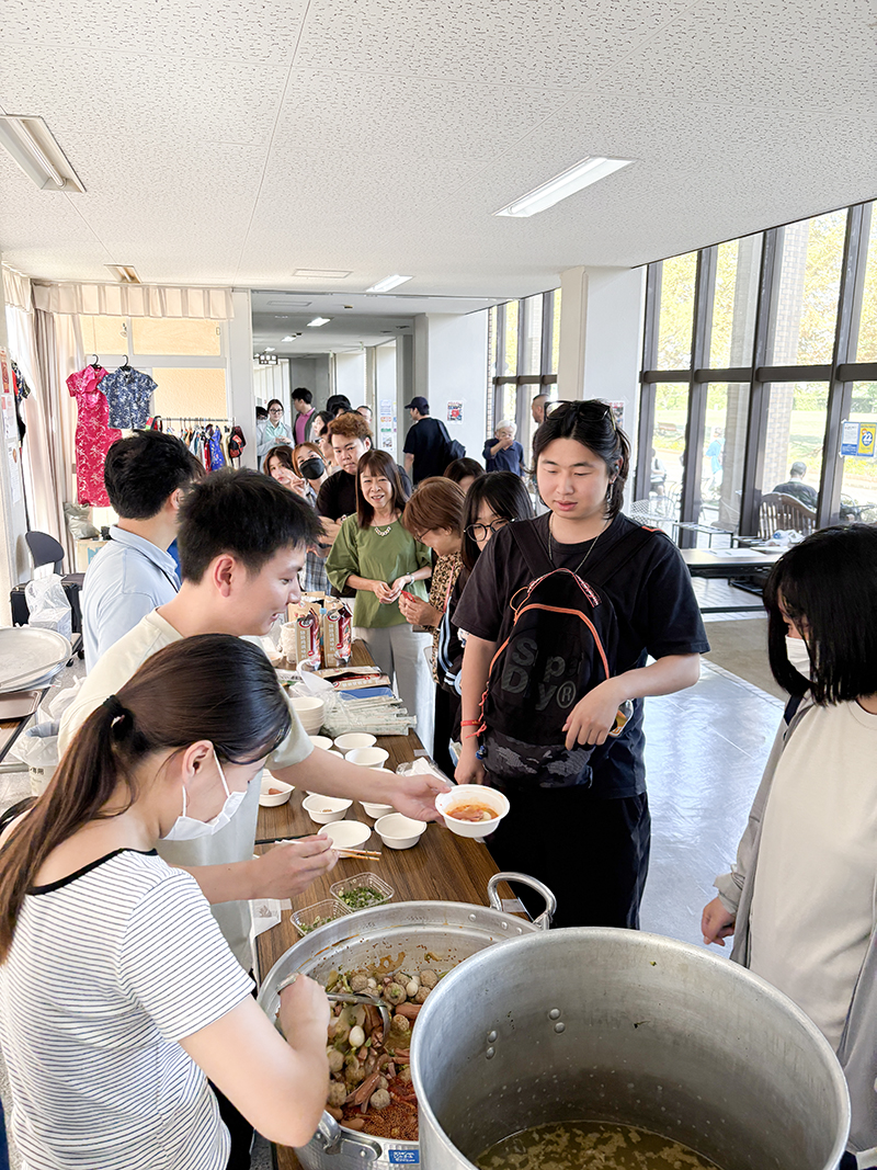 2025年10月7日(火)、大阪観光大学の国際交流プログラムの一環として、「中国DAY」 が開催されました。当日は、有志学生による中国・四川料理「鉢鉢鶏(ボーボージー)」の屋台、中国語講座、そして岸和田市日中友好協会の皆さまによる本格的な中国粥の販売など、多彩な企画が行われ、会場は中国の雰囲気に包まれました。