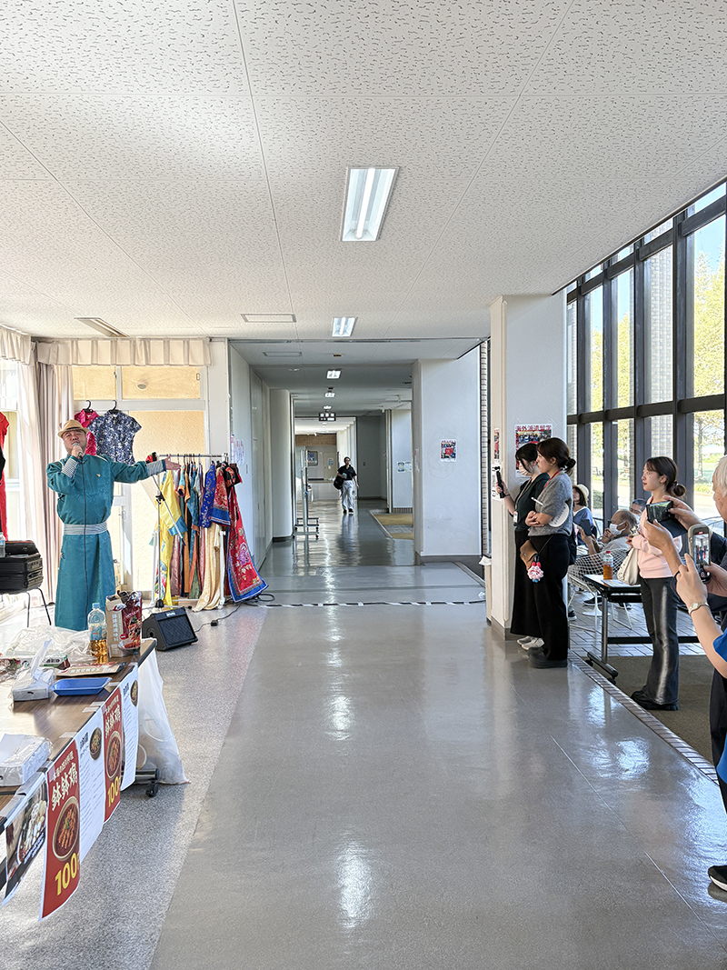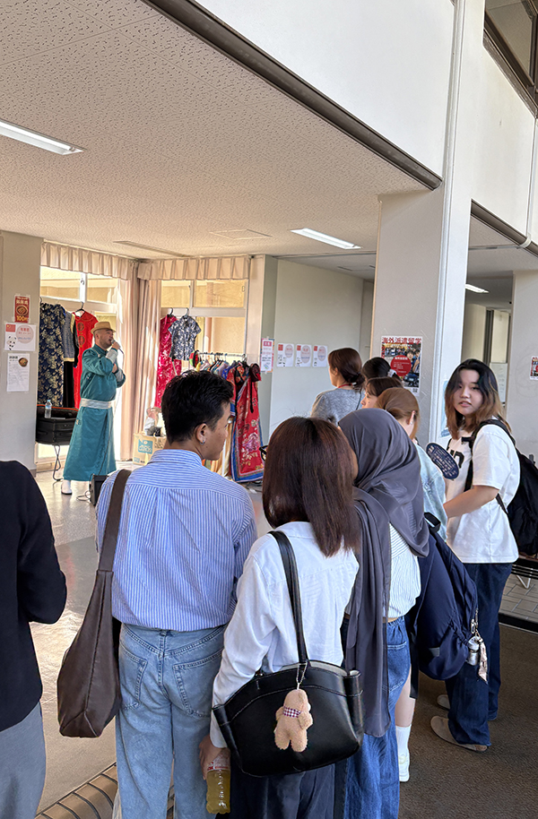 さらに、今回は中国・内モンゴル出身の演奏家 刘伟(Liu Wei)さんをお招きし、中国笛とフルスの生演奏が披露されました。普段なかなか耳にすることのない美しい音色に、会場の学生たちは興味深く聴き入っていました。 また、刘伟さんと同郷の留学生もおり、最後には記念撮影も行われるなど、温かい交流のひとときとなりました。