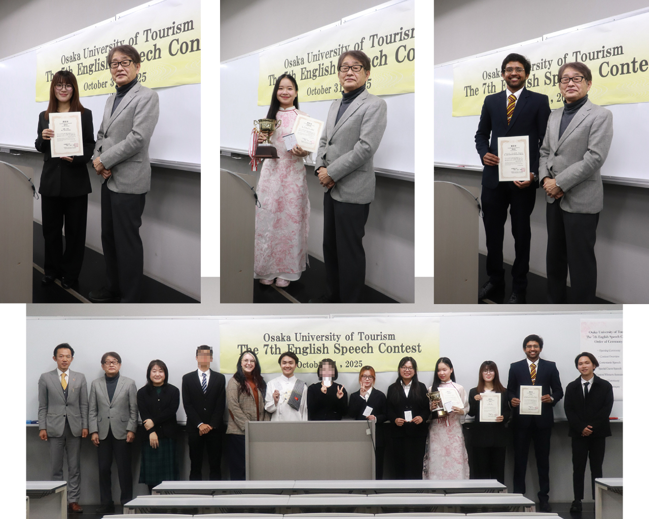 また、ゲストスピーカーとして昨年度の受賞者であるMr.NGUYENHOANGVULUAN(グエン ホアン ヴー ルアンさん(観光学部 2年)が『 Facing Fear-Finding Strength 』をテーマに登壇し、会場に力強いメッセージを届けました。