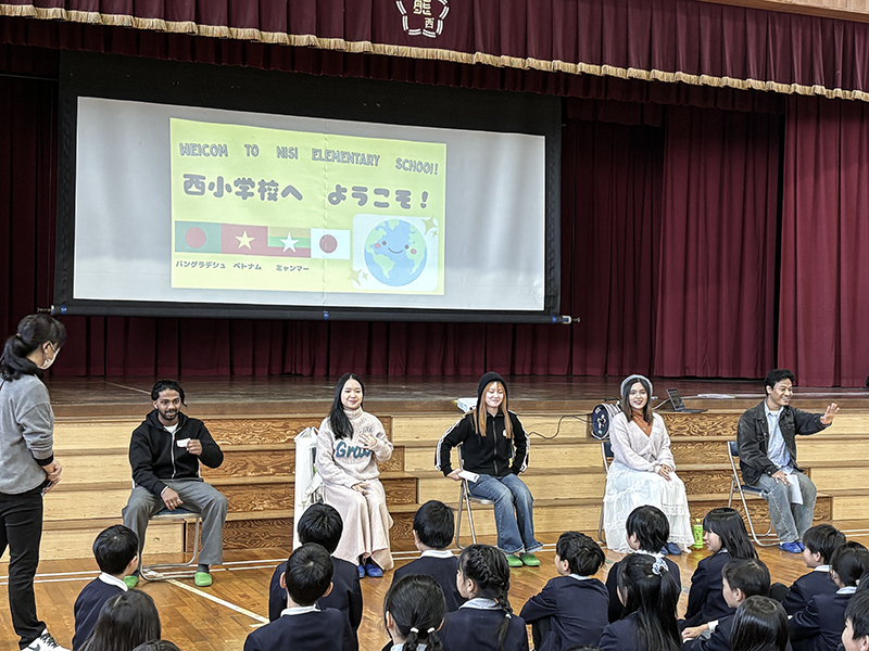 その後はクラスごとに分かれ、ミャンマー、ベトナム、バングラデシュ出身の本学学生が母国の文化や生活について紹介しました。