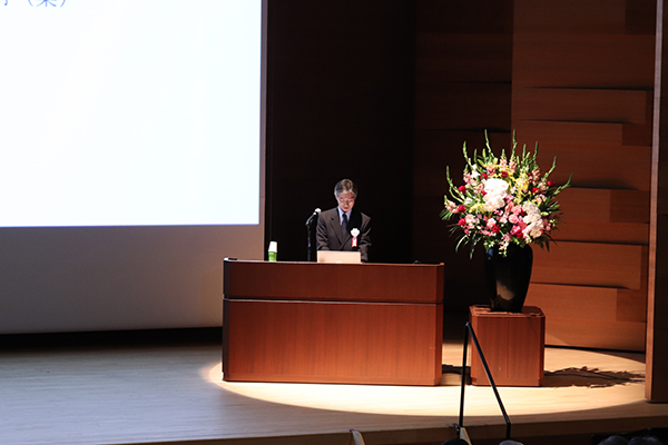 学校法人大阪観光大学の山本健慈理事長による式辞に続き、文部科学省高等教育局長、熊取町長、泉佐野市長、一般社団法人大阪外食産業協会会長より温かい祝辞を賜りました。