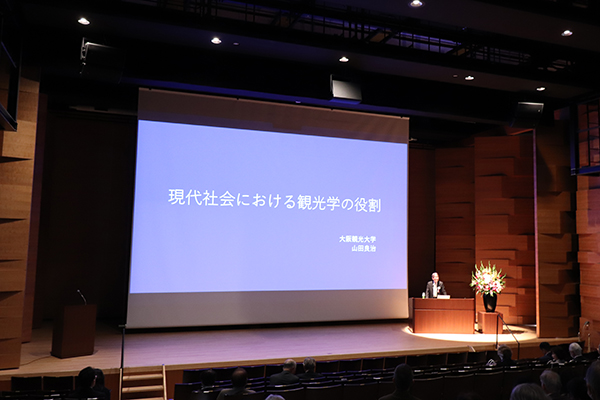 - 基調報告:山田良治学長が「現代社会における観光学研究教育の役割」をテーマに、基調報告を行いました 。