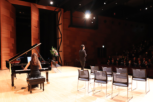 速水聡子講師によるピアノ演奏と伊原木幸馬客員准教授による学歌独唱