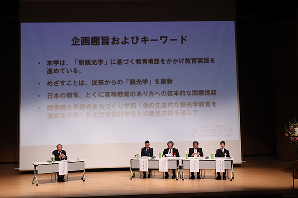式典に引き続き、「新観光学宣言 -新観光学教育の構想と実践」と題した記念シンポジウムを開催いたしました 。