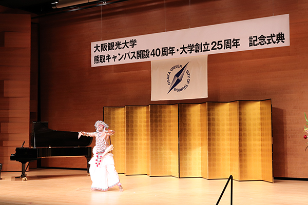 式典後の祝賀イベントでは、2025年3月卒業の岡野瑠那さんによるダンス「すずめ」や、スリランカ留学生のアベシンハ ヴィタナゲ ギムハン ナボディヤ アベシンハさんによるスリランカの伝統舞踊「ガジャガー・ダンス」が披露され、本学らしい国際色豊かでエネルギッシュなパフォーマンスが会場を魅了しました。